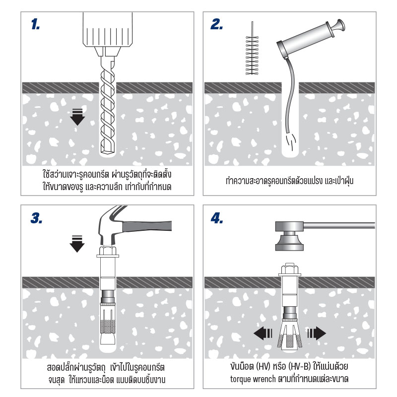 - When tightening the bolt or nut, the expansion cone is pulled into