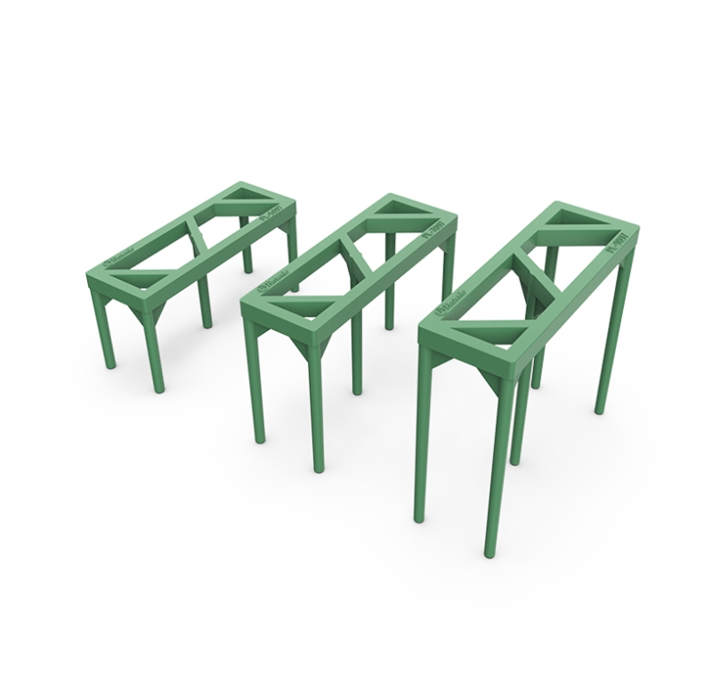 The Spacer is design for supporting and locking rebar, water pipe, and electrical tube in place while casting concrete. Covering large area enables itself to carry heavy load. Its stems allow good concrete flow.