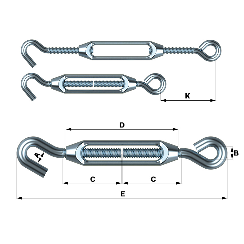Turnbuckles supply tension by adjusting the length for supporting rope, wire rope, and chain .