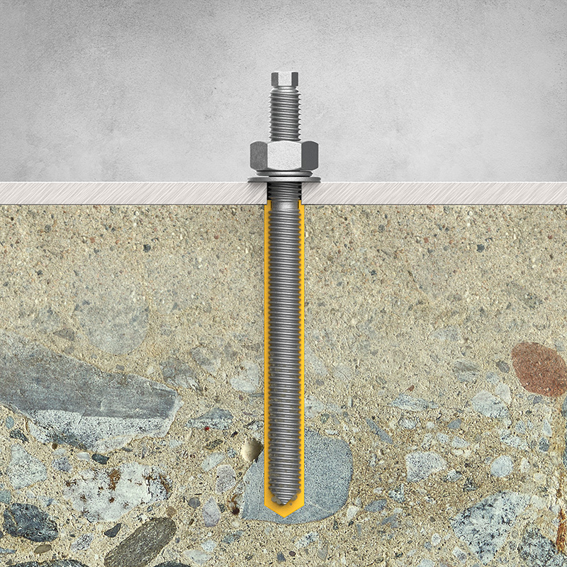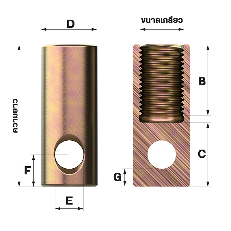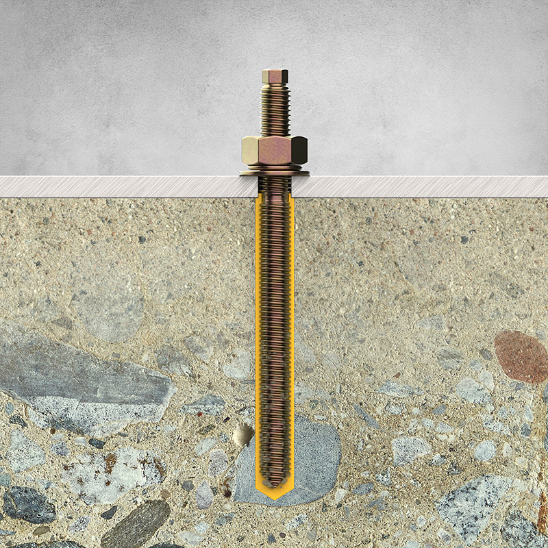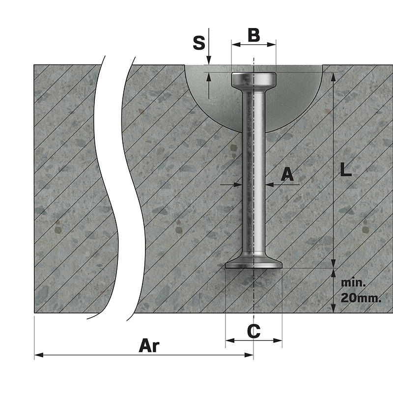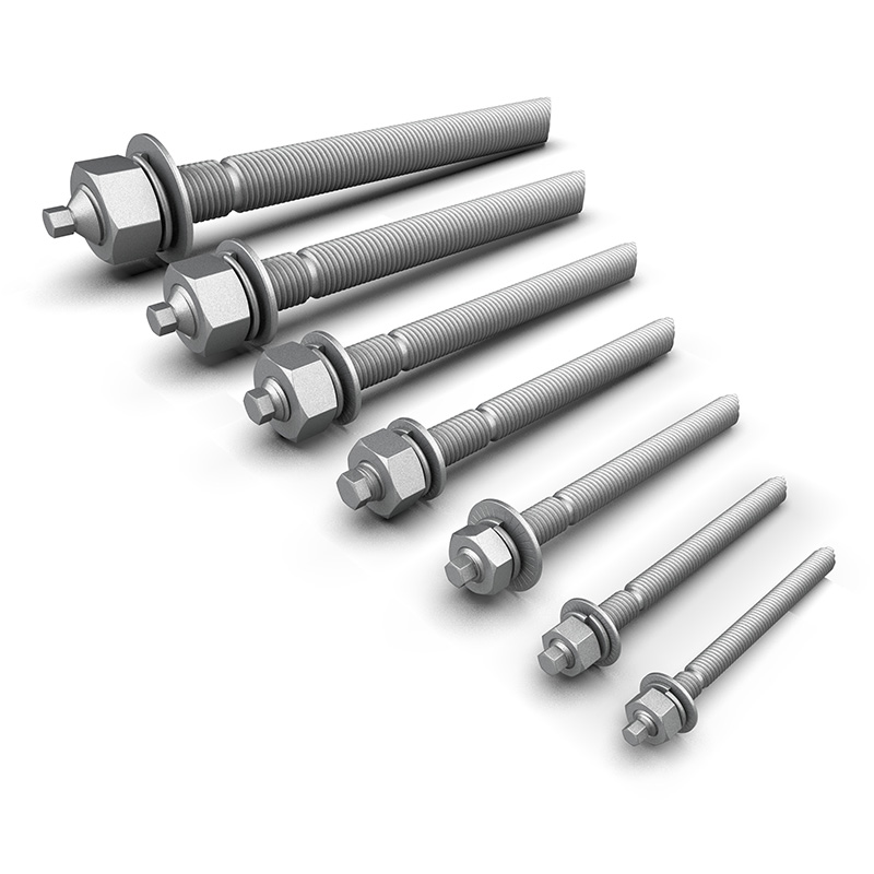 | รหัสสินค้า | ขนาดเกลียว | ความยาว (mm.) | ขนาดรูคอนกรีต (mm.) | ความลึกรูคอนกรีต (mm.) | แรงดึง (kN) | แรงเฉือน (kN) | ||||||||